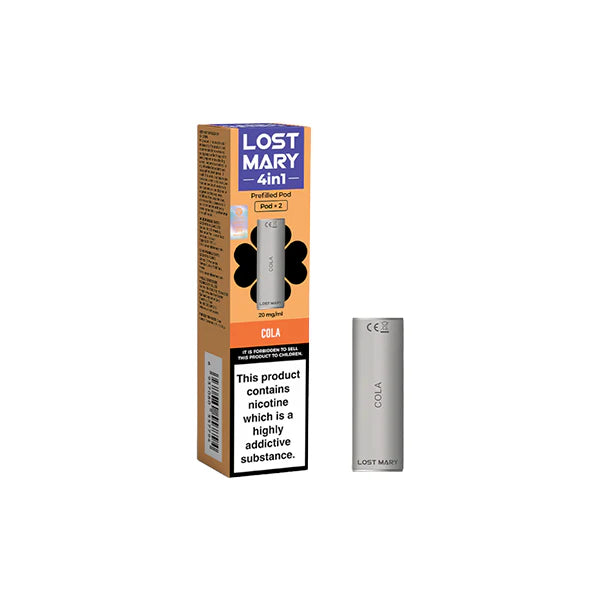 Experience the ultimate convenience and satisfaction with the 20mg Lost Mary 4in1 Prefilled Pod 1200 Puffs. This innovative pod seamlessly integrates with the Lost Mary 4in1 vape system, providing a hassle-free and flavorful vaping experience. With a potent 20mg nicotine salt formulation, you'll enjoy a smooth and satisfying nicotine hit that's cleaner and tastier than traditional cigarettes. And with a generous 1200 puff capacity, you can indulge in longer vaping sessions without the need for constant refills. Simply click the pod into your Lost Mary device and inhale to experience the rich flavour and a consistent throat hit with every puff. Perfect for seasoned vapers or those transitioning from combustible cigarettes, the Lost Mary 4in1 Prefilled Pod offers a discreet and convenient vaping solution to satisfy your nicotine cravings anytime, anywhere.